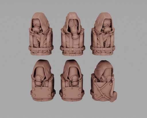 Original price $10.00 - Original price $10.00Original price$10.00$10.00 - $10.00Current price $10.00| /This kit contains 6 wasteland scavenger style bodies, with an assortment of gas masks and hoods. Compatible with most 28mm Heroic scale humans. Bi...